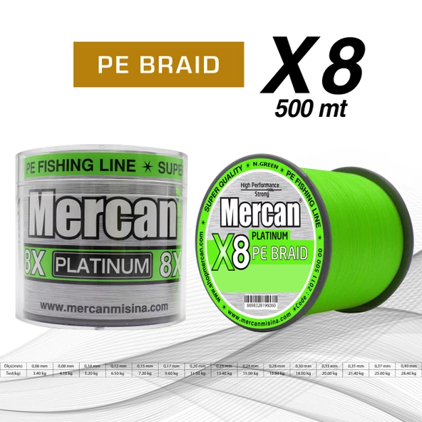 Mercan Pe Örgü Platinum X8 Neon Yeşil İp 500m Makara Misina