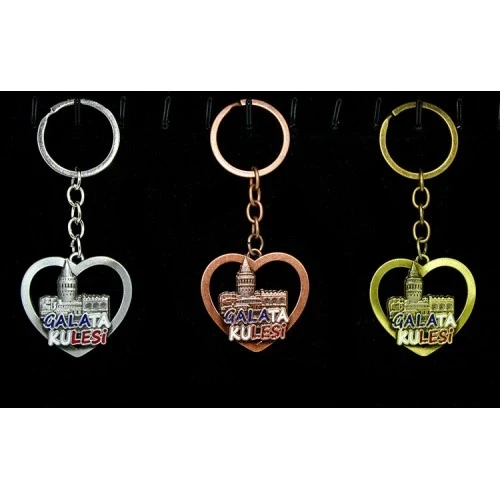 Metal Galata Kulesi Anahtarlık Kalp Tasarımlı