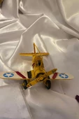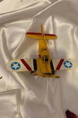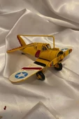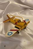 - Metal Uçak Dekoratif Maket El Yapımı Oyuncak Teyyare Planör Sarı Kırmızı Beyaz