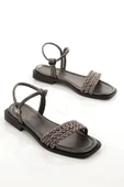 MİA026-1550 Kadın El Örgülü Abiye Günlük-Düğün-Eğlence-PLATİN Tatil Terliği
