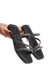 Ana Sayfa Giyim & Aksesuar Kadın Kadın Ayakkabı Terlik Topuklu Terlik MİA026-1602 Günlük Kadın Taşlı Siyah Tatil Terliği