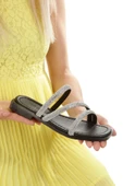 MİA026-1610 Kadın Günlük Taşlı Bantlı SİYAH Tatil TerliğiRenk