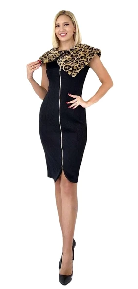 Modatalika Kadın Boydan Fermuarlı Leopar Yakalı Dantel Elbise