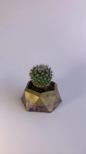 Mor Ve Gold Renk İle Süslenmiş Ebruli Prizma Şekil Epoksi Sukulent Saksı El Yapımı Hediyelik