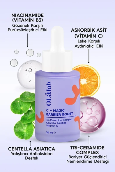 OlaLab Aydınlatıcı Bariyer Onarıcı Nemlendirici Ceramide & Vitamin C & Cica Serum 30 ml