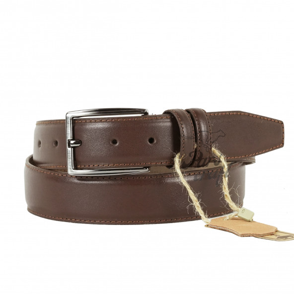 Parscraft Hakiki Deri Dikişli Kahverengi Erkek Kemer 35 Cm Siyah Klasik Kumaş Pantolon Kemeri