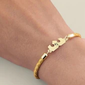 Sembole Özel Hakiki Altın Renkli Derili Derili 14 Ayar Altın Plakalı Taç Motifli Hediye Bileklik-463