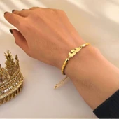 Ana Sayfa Takı & Gözlük & Saat Mücevher ve Değerli Taş Kadın Mücevher Altın Bileklik Sembole Özel Hakiki Altın Renkli Derili Derili 14 Ayar Altın Plakalı Taç Motifli Hediye Bileklik-463