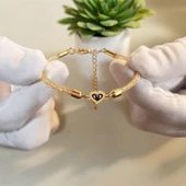 Ana Sayfa Takı & Gözlük & Saat Mücevher ve Değerli Taş Kadın Mücevher Altın Bileklik Sembole Özel Hasır Kordonlu 14 Ayar Altın Plakalı Kalp Figürlü Hediye Bileklik-474