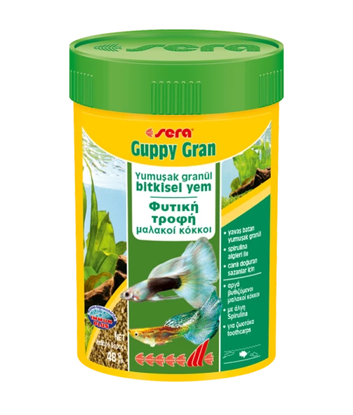 Sera Guppy Gran 100 ml. 48 gr Skt :11/2027 Lepistes Balık Yemi Orjinal Kutu