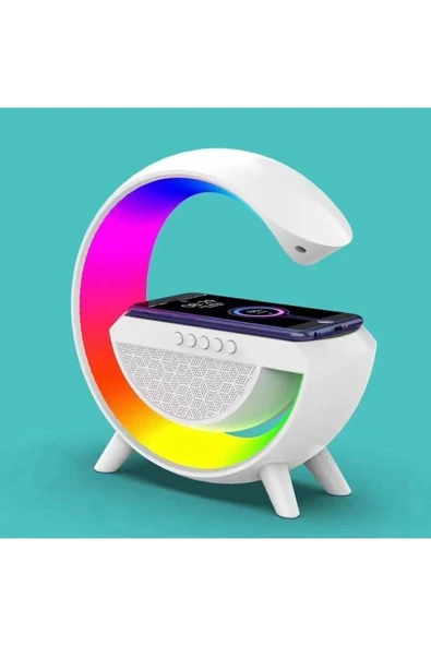 SMAYLİNG Kablosuz Şarj Özellikli Modern Saat Bluetooth Hoparlör Gece Masa Lambası Çok Fonksiyonlu Atmosferik