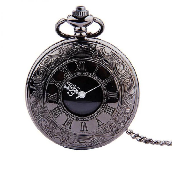 Valkyrie Vintage Roma Rakamlı Cep Saati Köstekli Saat Siyah