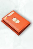 Vegan Deri Cüzdan Çıtçıtlı Geniş Kağıt Para - 8 Adet Kart Kapasiteli Minimal Model Turuncu