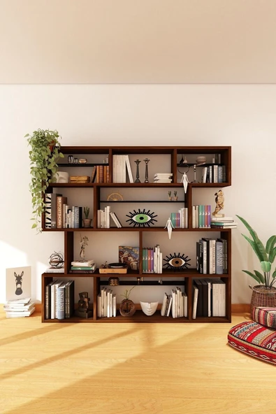 Woodesk Yonca Masif Ağaç Ceviz Renk 200x200 Kitaplık Cpt6007-200